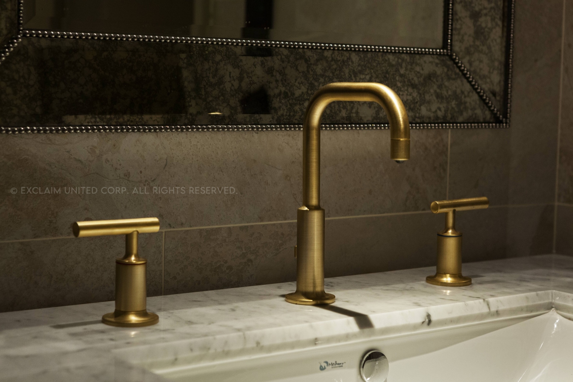 屋主身材十分高挑,一般常規的浴缸尺度有限,總是讓她縮著身軀泡澡,無法真正舒展全身,因此,周總監先是修改浴室格局,以一字型依序規劃臉盆、馬桶,將最後臨窗露台作為沐浴區。她為屋主選擇自德國進口,極具造型之美,寬度達 165 公分的圓形浴缸,再搭配古典氣質的龍頭及把手,融入金色元素,提升輕奢美感。