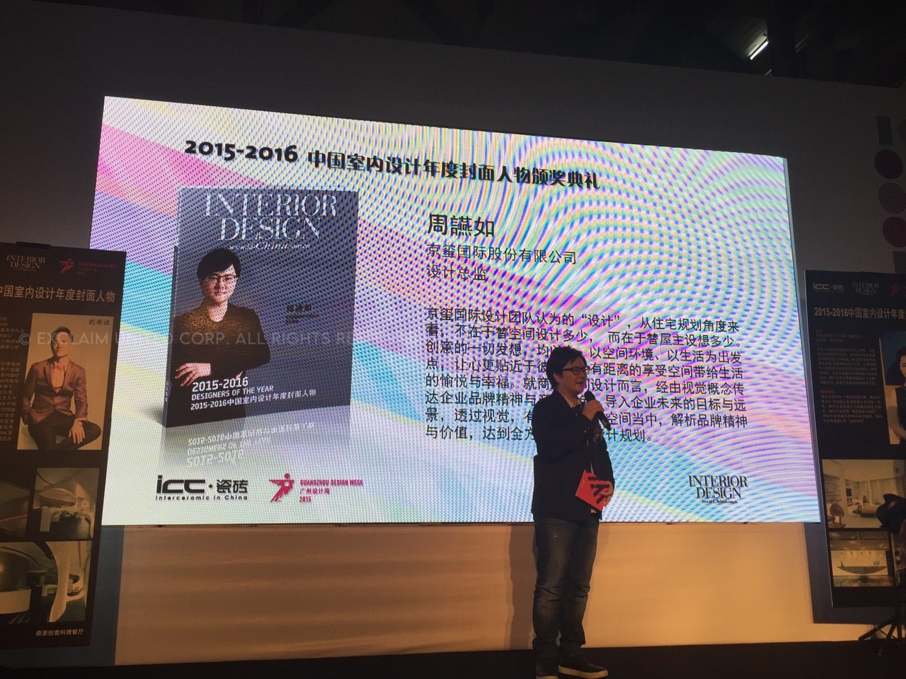 中國室內設計年度封面人物,是由美國《室內設計》中文版雜誌首創的金牌活動 2015年12月4日,「2015-2016中國室內設計年度封面人物」頒獎典禮在廣州琶洲保利世貿博覽館隆重舉行,為廣州設計週揭開序幕。