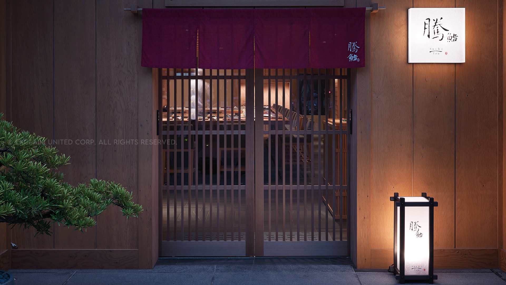 為呼應料理,Joy採用日本「料亭」木構造、木格柵的概念來做設計,不惜從日本引進原料及職人工藝,完美還原日本江戶時代的懷舊場景。從低矮門片和天花,到島台式的Open Kitchen,一覽無遺的開闊視感下,可見以精湛純手工技藝編織的壯麗富士山絕景,與由大正時期畫家及平成時期藝術家親手繪製的金箔「散花圖」相互輝映。她說,日本人一看到富士山就覺得回到家了,騰鮨就是希望做到讓高級料理也能保有家的親切感。