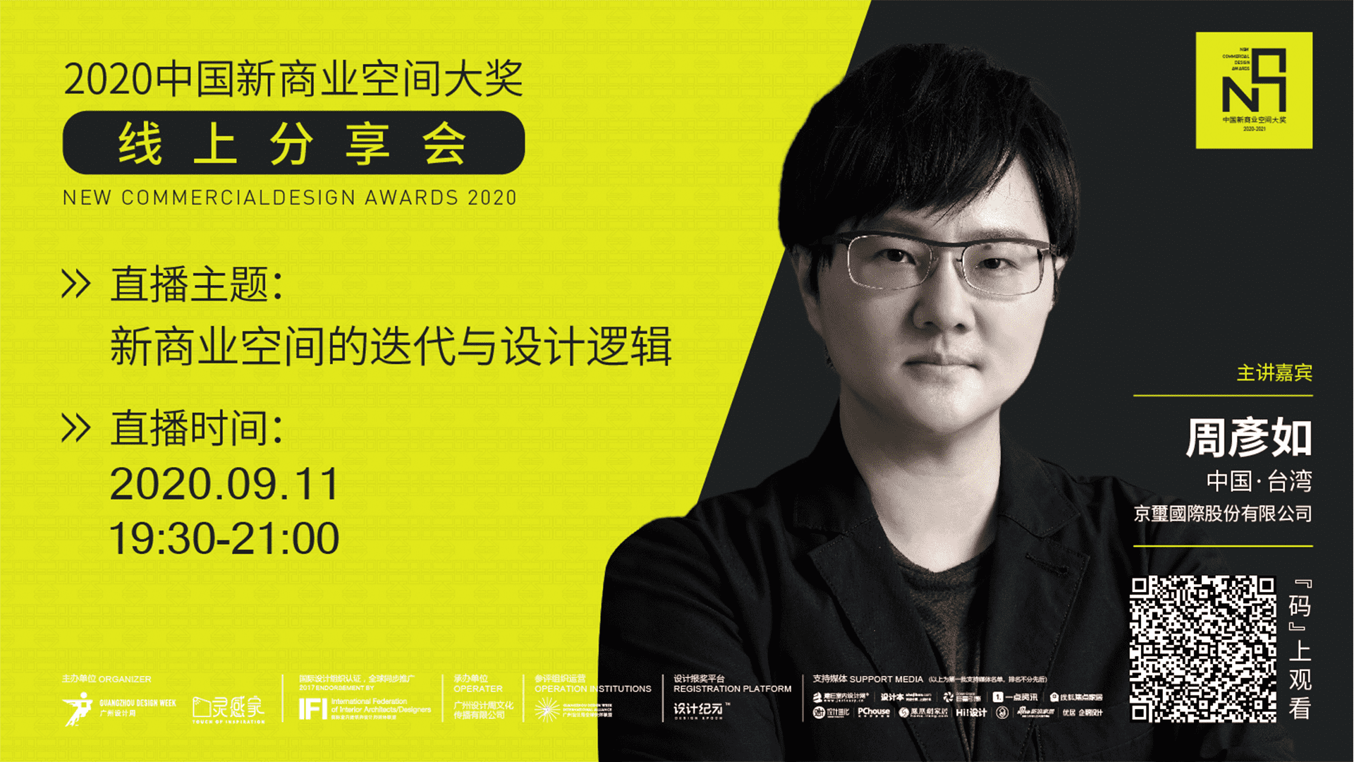 記得9/11星期五 19:30-21:00 掃碼觀看,和我們在廣州設計周課程直播平台上見面!