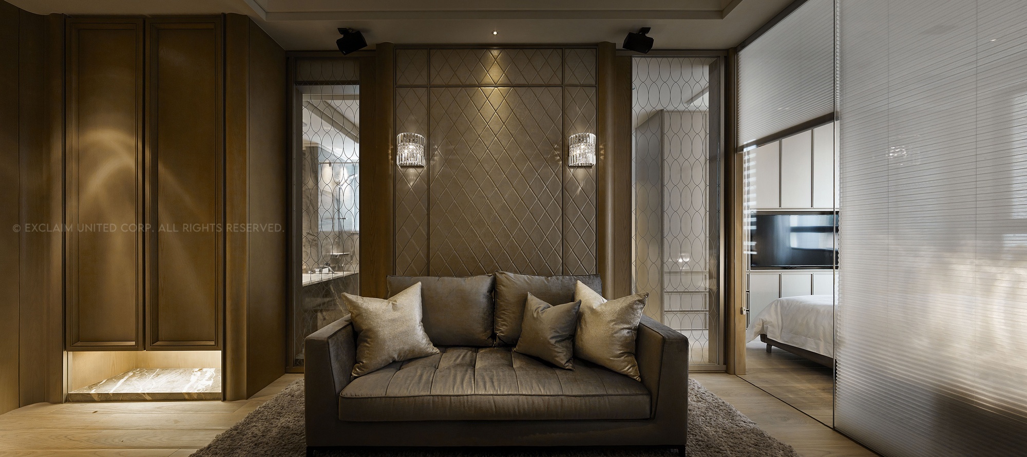 在現代幾何線條的陣列下,形塑立體秩序,分割出機能、活動二者空間前後層次,透過玻璃介質的轉述,再與居者交集相遇,它已不只是設計,已然成為生活文化,演繹個性精神。