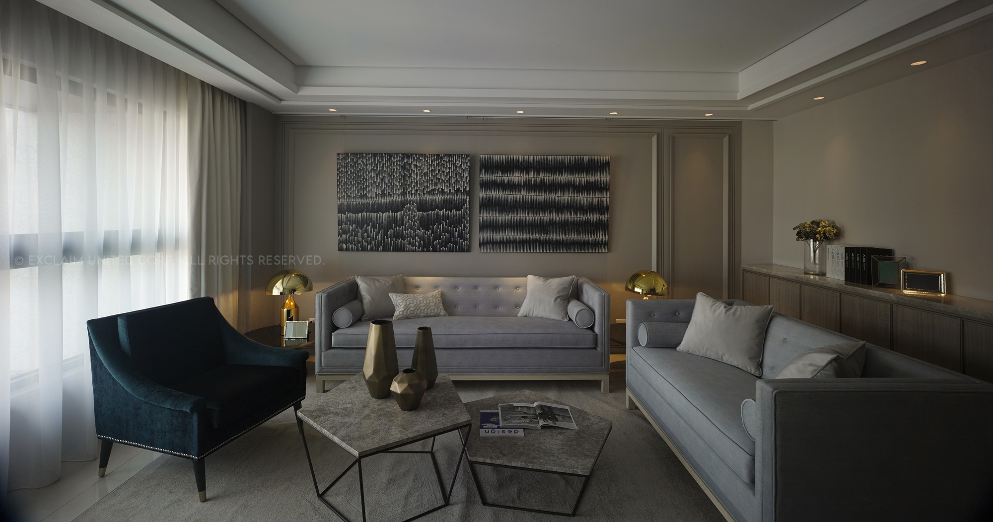 以 Art Deco 華麗轉身,闡述光輝歲月邁向新時代的熟成與自信,轉入室內展現出經淬鍊後所沉澱下的內斂底蘊,輕盈簡約的「線條框景」手法,簡潔明快的線條語彙,讓布藝與藝術品化身成裝飾元素,生活在藝術為伴下,安排出框景故事牆。