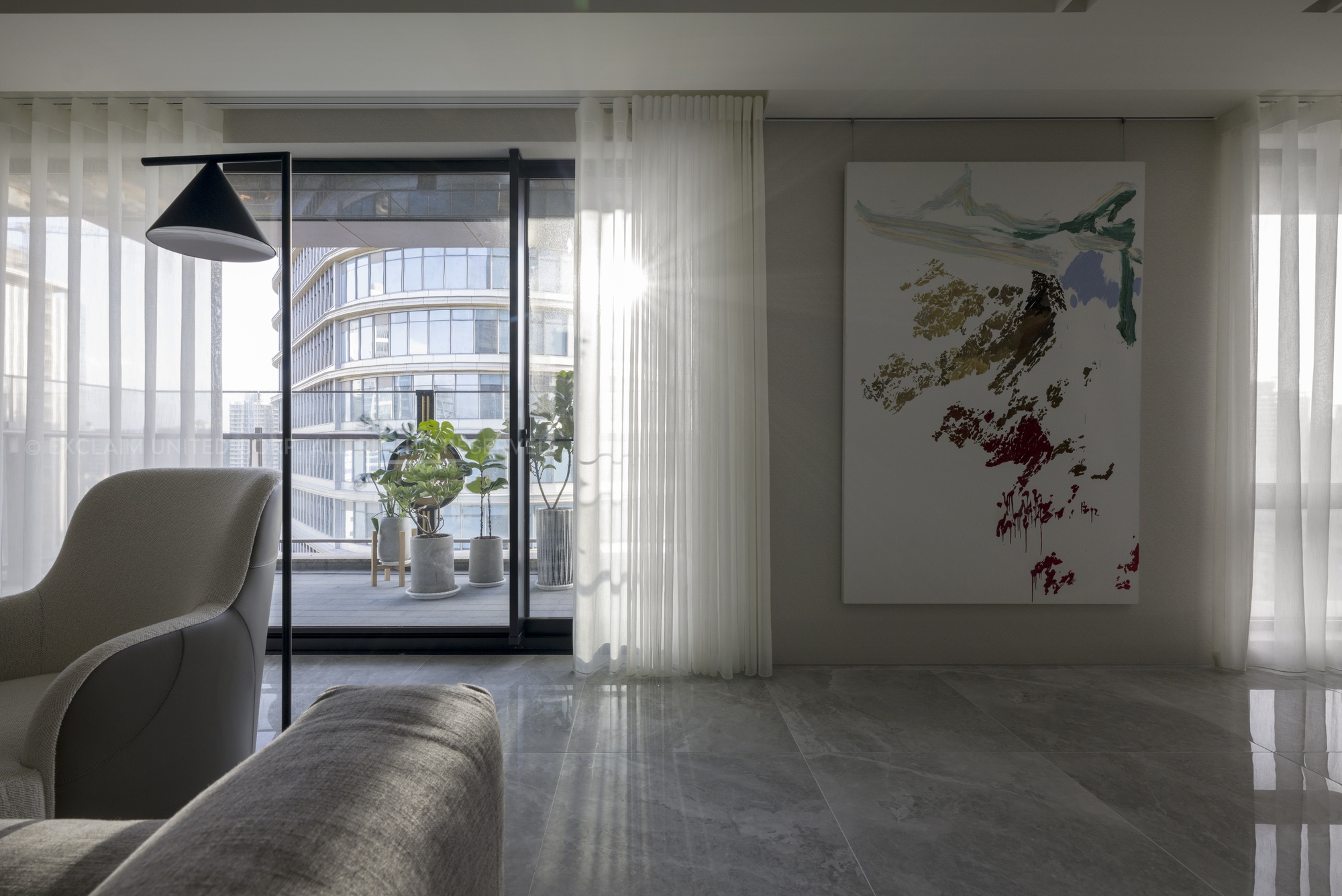 從事洋酒代理商的男主人,在溝通時僅提出家庭成員居住需求,一方面打造出女主人喜愛的現代輕奢、時尚且具精緻感的宅邸,同時以親子互動為前提,擘劃溫馨的共享時光。設計師講究高端訂製概念,聯袂家人生活情感,融會“藝術、生活、綠意”,引述時尚精品的質感,藉此深厚豪宅韻致。