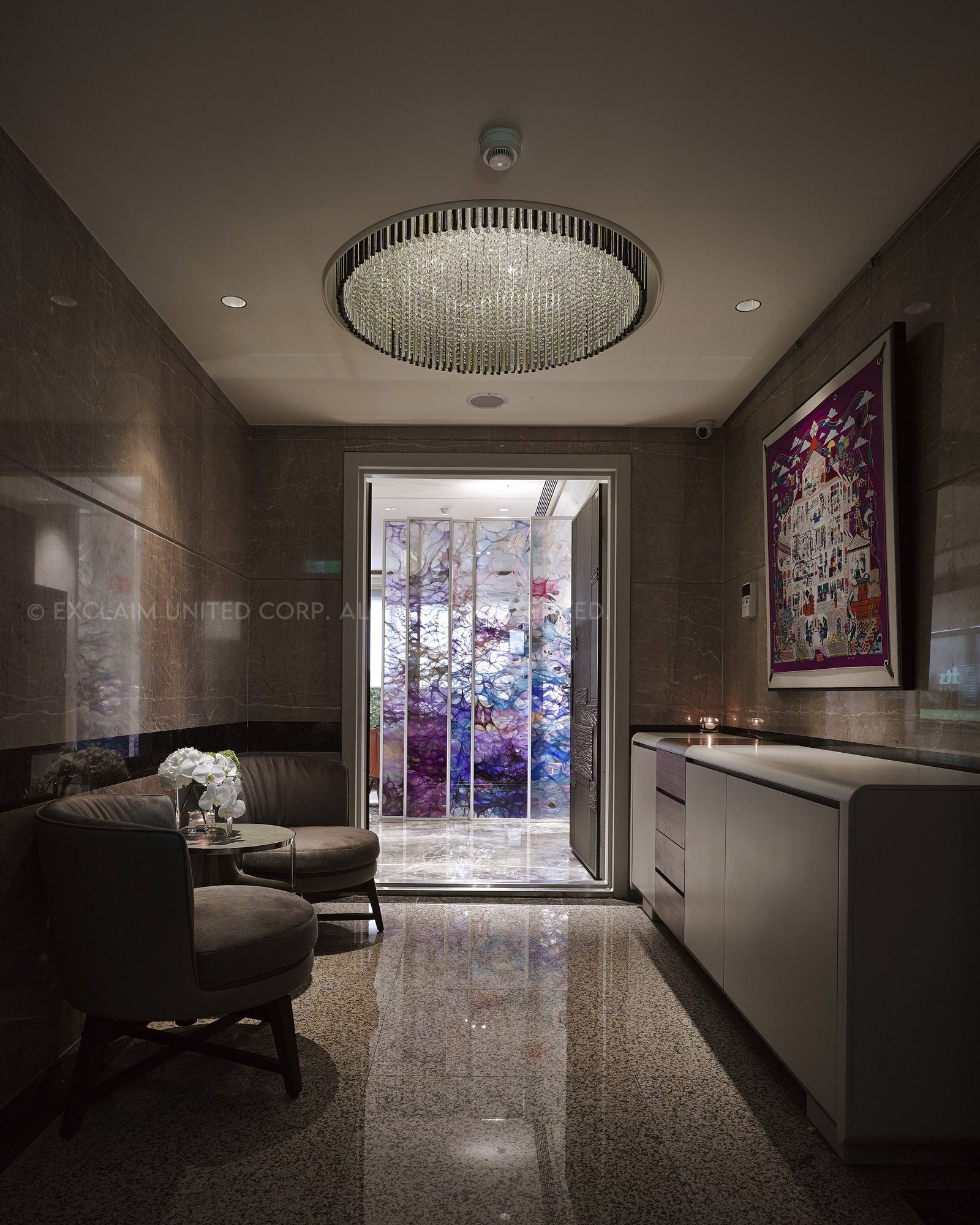 由著藝術自由、有機的畫面,消弭入口的衝突,促成餘裕的緩衝空間,依憑對稱線條,勾摹出重重輪廓。