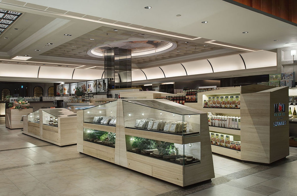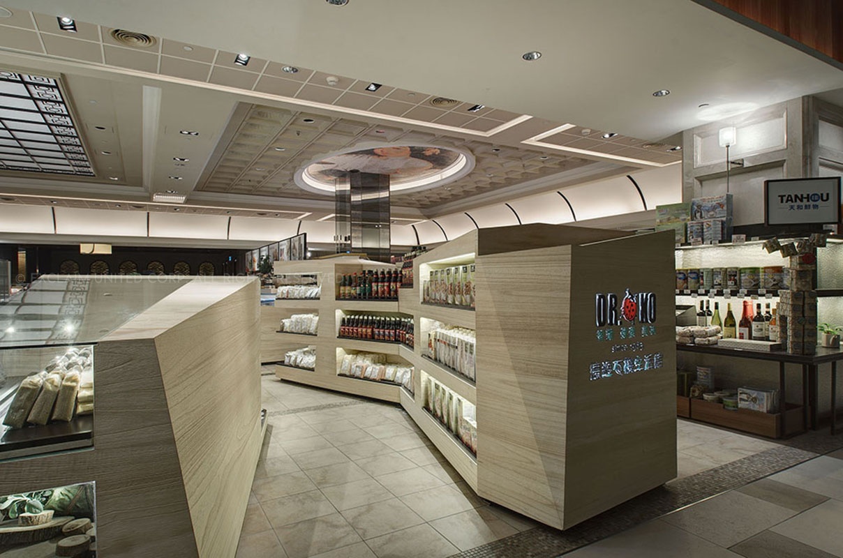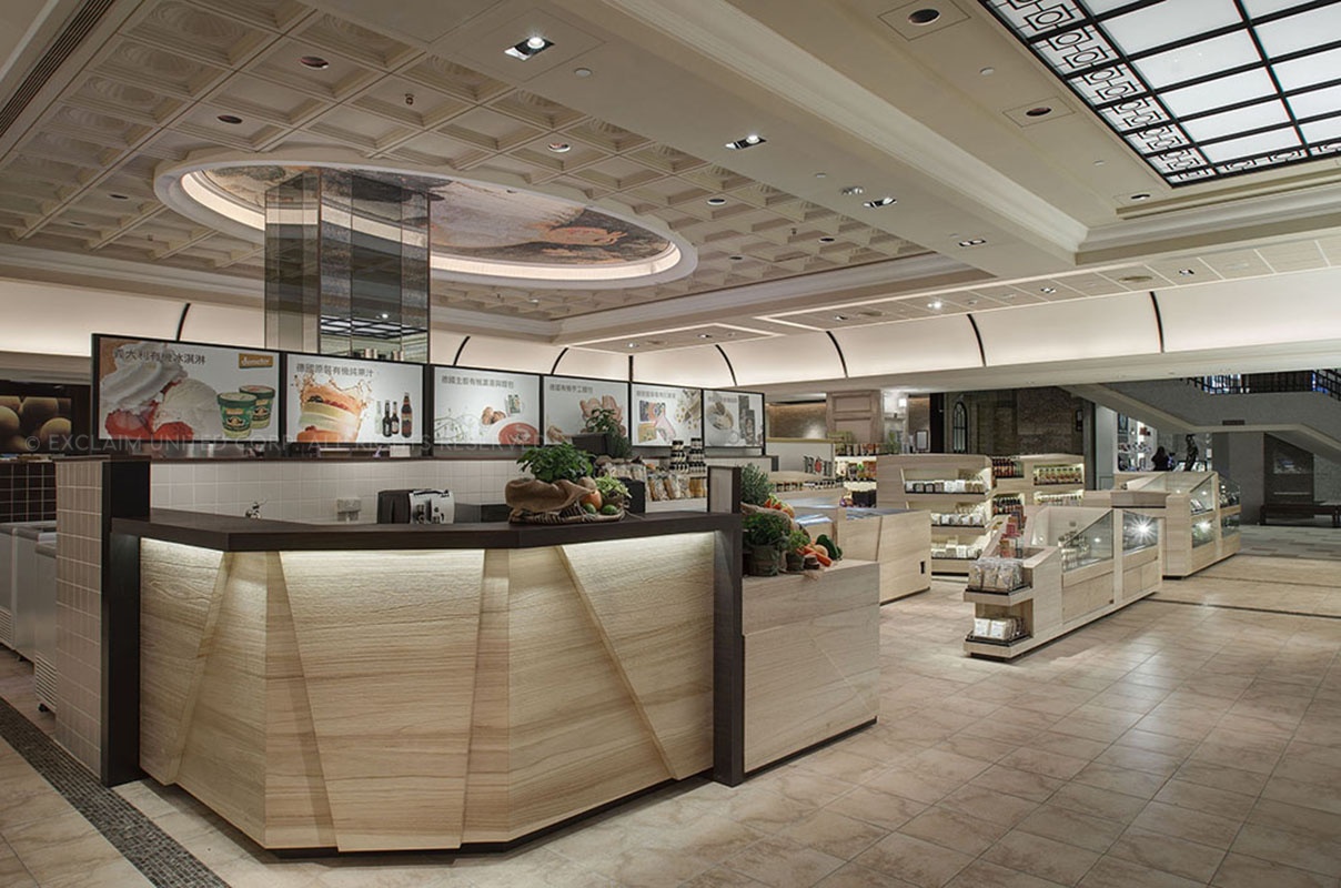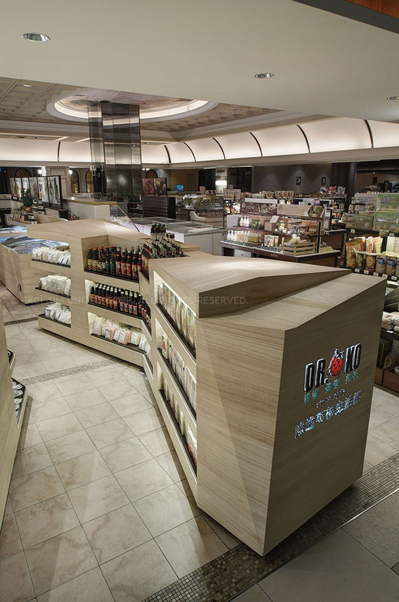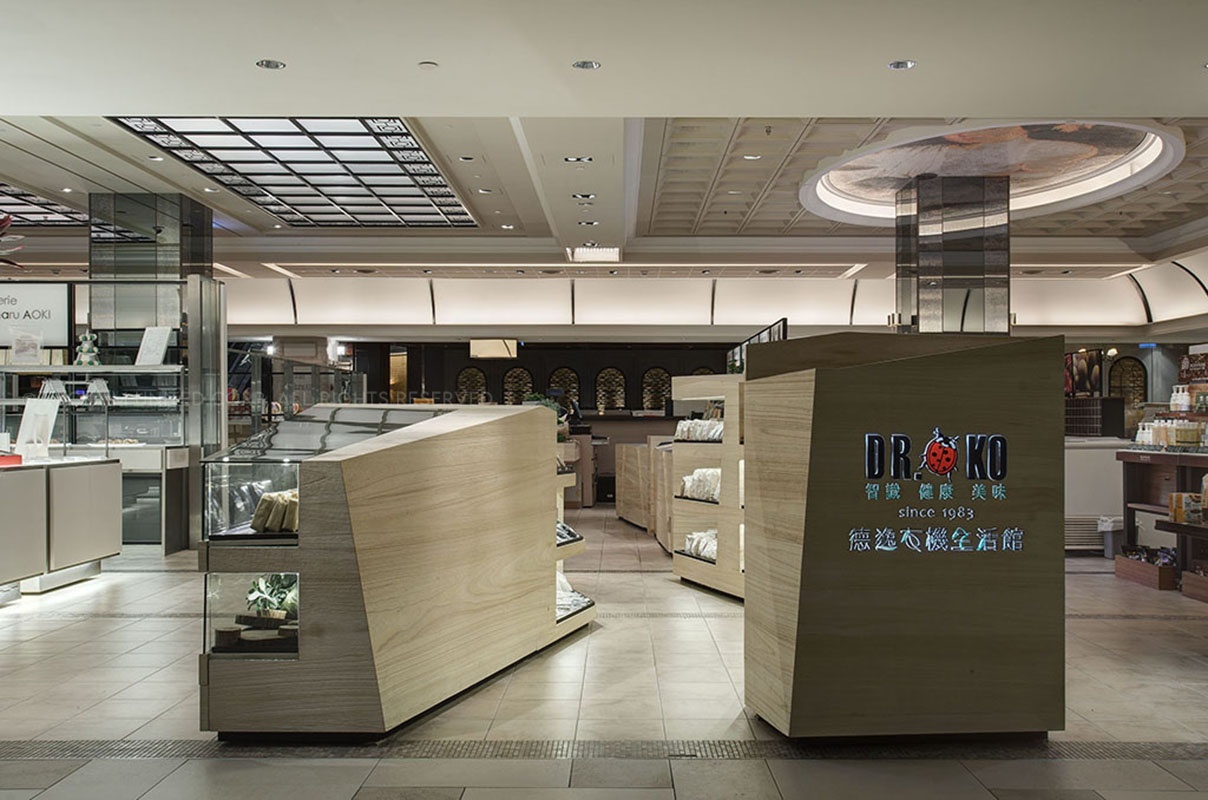 設計團隊對於業主的用心感同深受,設計概念以樸實自然歐洲山脈轉換為有機食品天然形體構造,呈現於實體百貨專櫃。
