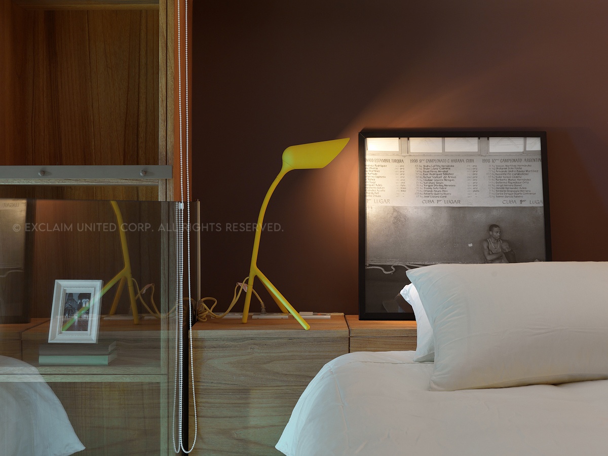 線條柔軟的窗幔及現代感的畫作調和空間的冷硬。